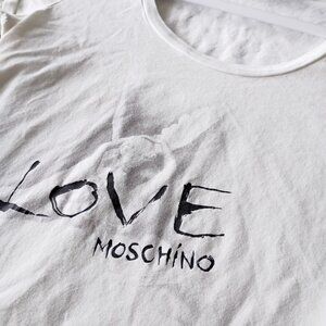 Love Moschino white top featuring a classic round neckline and sleek silhouette. Made with soft, high-quality fabric — perfect for layering or wearing solo. Subtle designer style that’s easy to dress up or down.