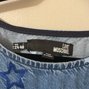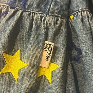 LOVE MOSCHINO Flounced Embroidered Denim Drsss Sz 4