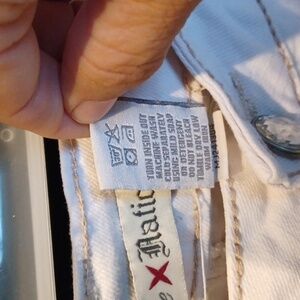 LOVE NATION White Denim boot cut, distressed Rhinestone pockets Size 12 jeans
