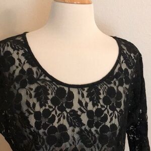 LOVE ON A HANGER Black Lace Sheer Cover Up Open Back Top Women's Medium Boho