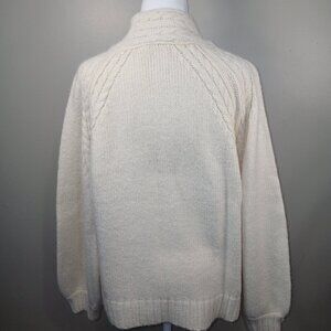 LOVE RICHE CREAM SWEATER MOCK TURTLENECK CABLE KNIT TRIM DESIGN WOMENS LARGE