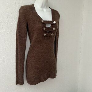 LOVE ROCKS CUT OUT V-NECK PLUNGE SWEATER