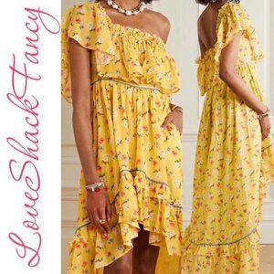 LOVE SHACK FANCY ALEXIA RUFFLE TIERED HI-LO FLORAL DRESS COTTAGECORE MILKMAID, 4