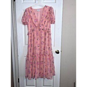 LOVE SHACK FANCY Target Fleur Pink Floral Ruffled Midi Dress Boho Party