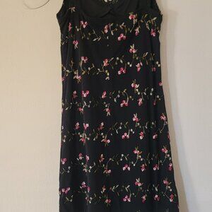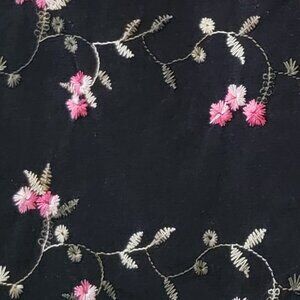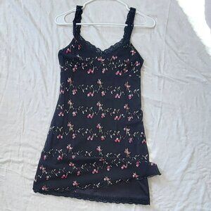 LOVE SOUP Y2K Babydoll Black Lace Whimsigoth Dark Fairy Slip Dress Size M with embroidered light Floral Pink Rose Bud design stretch lace overlay with solid black lace trimmed layer underneath. V neck. Lacey straps. Very stretchy. 100% polyester.