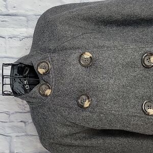 LOVE STITCH Double Breasted Gray Part Wool Cape Jacket Large
