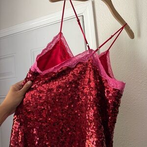 LOVE STORIES Anthropologie pink red sequin sleeveless mini dress