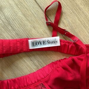 LOVE STORIES Red Lace Triangle Bra Spaghetti Strap Adjustable Sexy Bralette NWOT