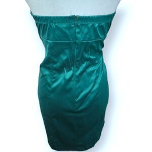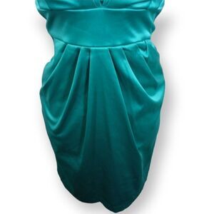 LOVE TEASE TURQUOISE SATIN STRAPLESS DRESS W/POCKETS SZ.11 EUC.