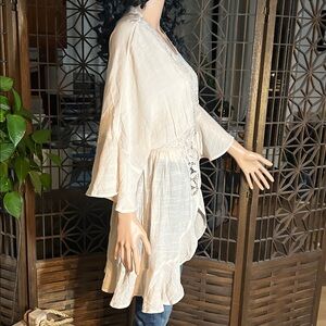 LOVE TREE BEAUTIFUL UNIQUE KIMONO SIZE M CREAM COLOR. BELL SLEEVES . Lots of detail lace work. Very feminine. So many wearing options . Perfect condition.