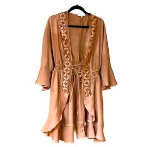 LOVE TREE ~ Bohemian Mocha Kimono with Embroidered Trim size M