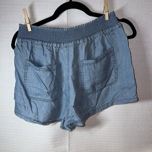 LOVE TREE Chambray Smocked Blue HI Rise Shorts Women Large