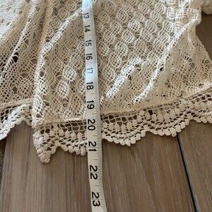 LOVE TREE Crochet Open Front Short Sleeve Cardigan Cream Size Small