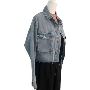 The perfect, light weight denim jacket to transition to fall weather. With frayed hems, it's the perfect piece to wear with leggings or over your favorite romper.