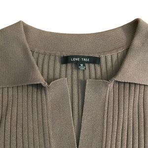 LOVE TREE Long Sleeve Ribbed Knit Mini Dress Size M Taupe V-Neck Stretch