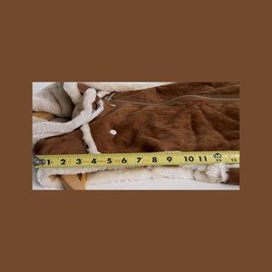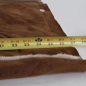 A brown faux suede and cream faux fur vest. Very soft lining. Designed with zippered side pockets. See all photos for additional description.