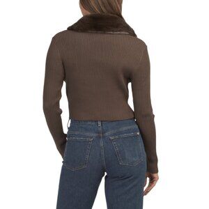 LOVE TREE Mocha Removable Faux Fur Collar Sweater