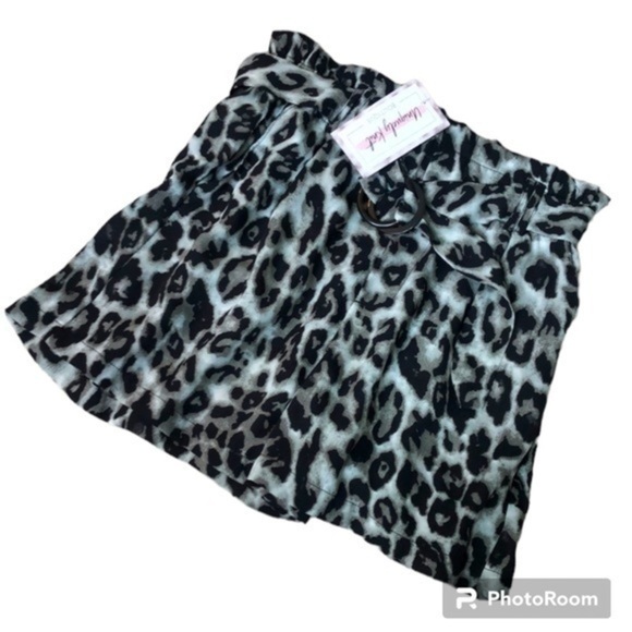 LOVE TREE | NWT Love Tree Black + Gray Animal Print Buckle High Waist Skort, S