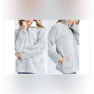 LOVE TREE SHERPA QUARTER ZIP FLEECE PULLOVER GRAY WHITE WOMEN'S SIZE SMALL