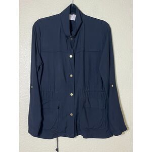 LOVE TREE SzS Lightweight Utility Jacket Snap Button Drawstring Cinch Waist Blk