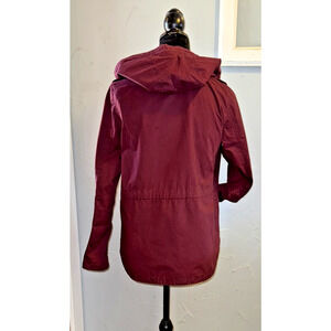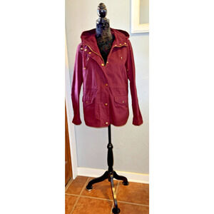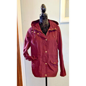 LOVE TREE Women Utility Jacket Hooded Dark Red Long Sleeve Medium
