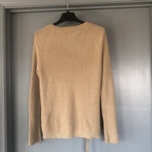 LOVE TREE Women’s Tan Lace-Up Front V-Neck Knit Sweater-Size M Long Sleeves