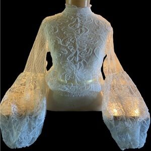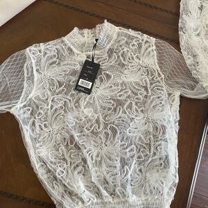 LOVE UNIVERSITY goth lace mesh crop top in white NWT SZ M (JR) see through