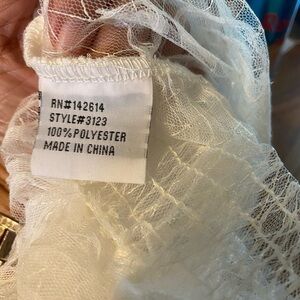 Size M (jr), 100% polyester beautiful puff sleeves, elastic waist band