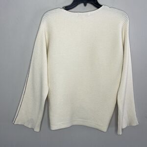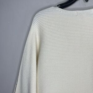 LOVE WHIT Crisscross Sweater Women XS Ivory Side Stripe Pullover Boat Neck