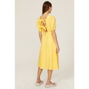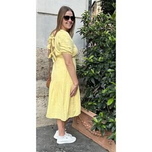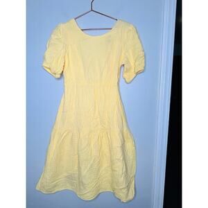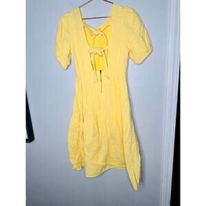 LOVE WHIT Yellow 100% Cotton Crewneck Short Sleeve Tie Back Dress Size Medium