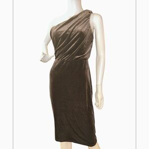 LOVE X DESIGN NWT Velvet One Shoulder Chocolate Brown Dress Women's Size M