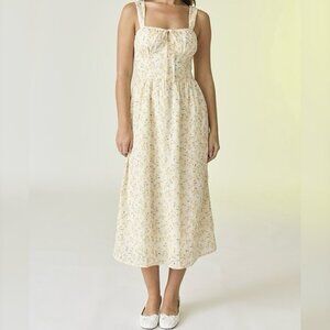 LOVE YOU MOST YELLOW FLORAL EYELET MIDI DRESS