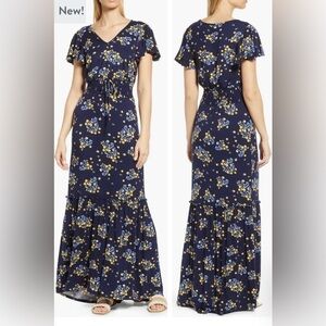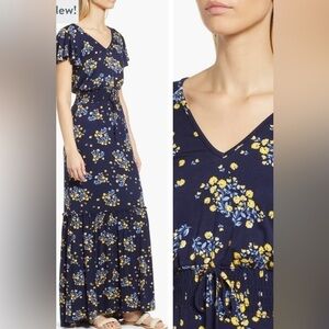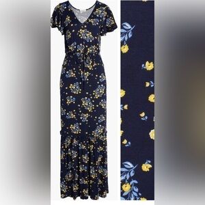 LOVEAPPELLA FLORAL SMOCK WAIST KNIT WAIST MAXI NAVY MEDIUM NEW WITH TAGS ABOUT DRESS AND SIZING IN PHOTOS