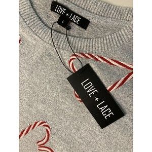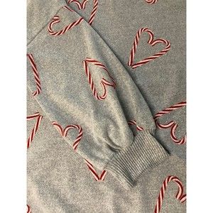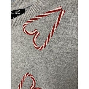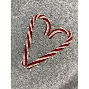 LOVE+LACE Womens Soft Stretch Studded Gray Sweater With Candy Cane Hearts Size L