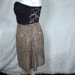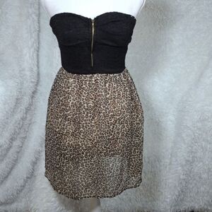 LOVELY DAY BLACK & LEOPARD PRINT STRAPLESS DRESS SZ.S EUC.