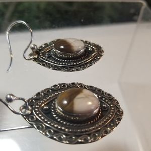 LOVELY PEANUT WOOD JASPER GEMSTONE 925 STERLING SILVER EARRINGS