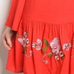 DETAILS- FLARED LONG SLEEVES AND EMBROIDERED FLOWERS