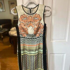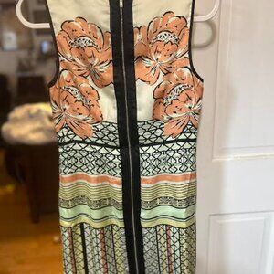 ARTSY pattern dress with total back zipper. This is very versatile and can be worn for casual wear or dressed up for cocktail. Marked S. Works for XS as well.