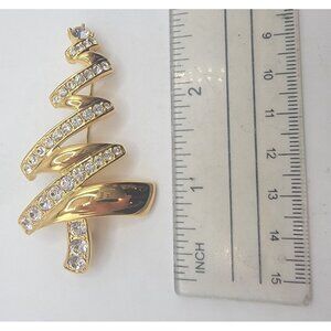 LOVELY VINTAGE MONET ABSTRACT CHRISTMAS TREE PIN BROOCH GOLDTONE RHINESTONES