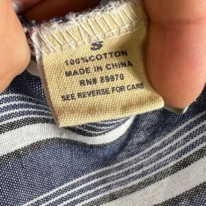 LOVE NOTES Blue Peplum Stripe Button Down Ruffle Long Sleeve Cotton Shirt