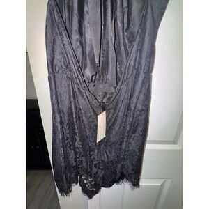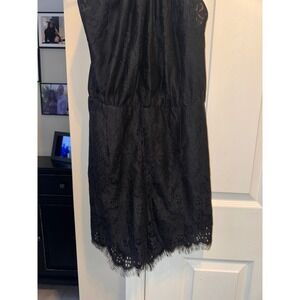 Keywords: LOVER the Label, black romper, lace romper, halter neck, sleeveless romper, cocktail romper, party romper, womens romper, lace shorts, tie neck, elastic waist, scalloped hem, dressy romper, formal romper, new with tags