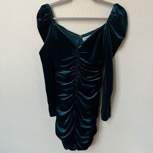 LOVERS + FRIENDS | Andie Ruched Velvet Fabric Mini Dress in Deep Teal | Size S