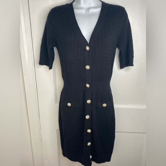 LOVERS + FRIENDS Bella Black Pearl Diamond like Button-Down Mini Sweater Dress