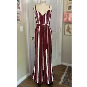 LOVERS + FRIENDS "Charisma" Red Striped Belted wide leg JUMPSUIT Romper *SMALL*