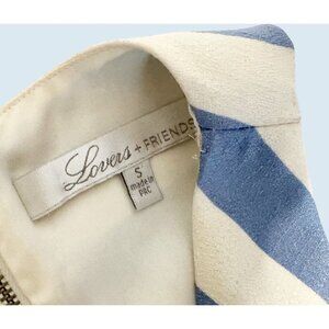 Great dress by Lovers + Friends. Blue and white striped. Sleeveless. V neck. Cut out at waist. Exposed back zipper. Side seam pockets. Lined. 100% polyester. Size small. Pre-owned and gently worn in really nice condition!