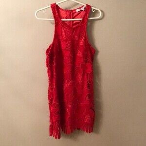 LOVERS + FRIENDS MEDIUM CASPIAN RED SHIFT DRESS EMBROIDERY LACE HIGH NECK