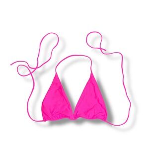 Keywords: bikini, swimsuit, neon, pink, string, halter, triangle, adjustable, thong, beachwear, poolside, vacation, summer, bold, trendy