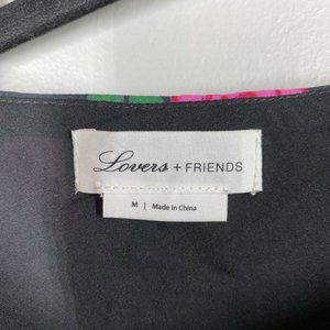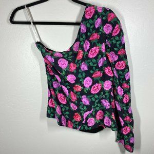 LOVERS + FRIENDS Pink/Purple Roses Print One Shoulder Puff Sleeves Blouse Top