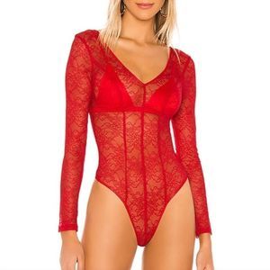 NWT LOVERS + FRIENDS REVOLVE Pearson Bodysuit in Cherry Red lace body suit in a bright cherry red!