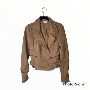 LOVERS + FRIENDS REVOLVE Tan Pierce Faux Suede Moto Jacket Size XS Neutral